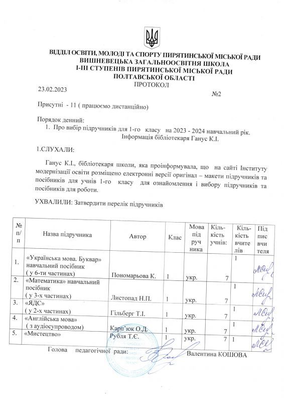 Список закладів освіти Пирятинського району щодо отримання ліцензії