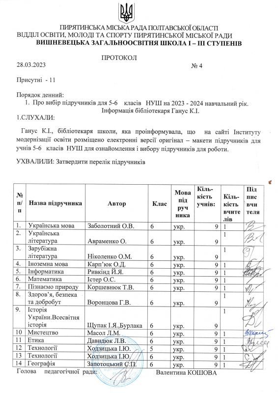 Звіт директорки Вишневецької гімназії Валентини КОШОВОЇ