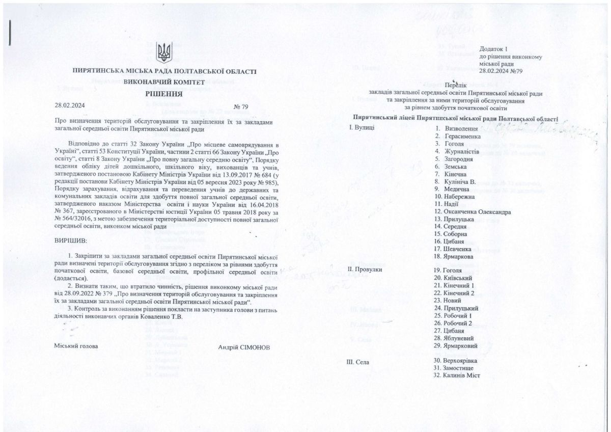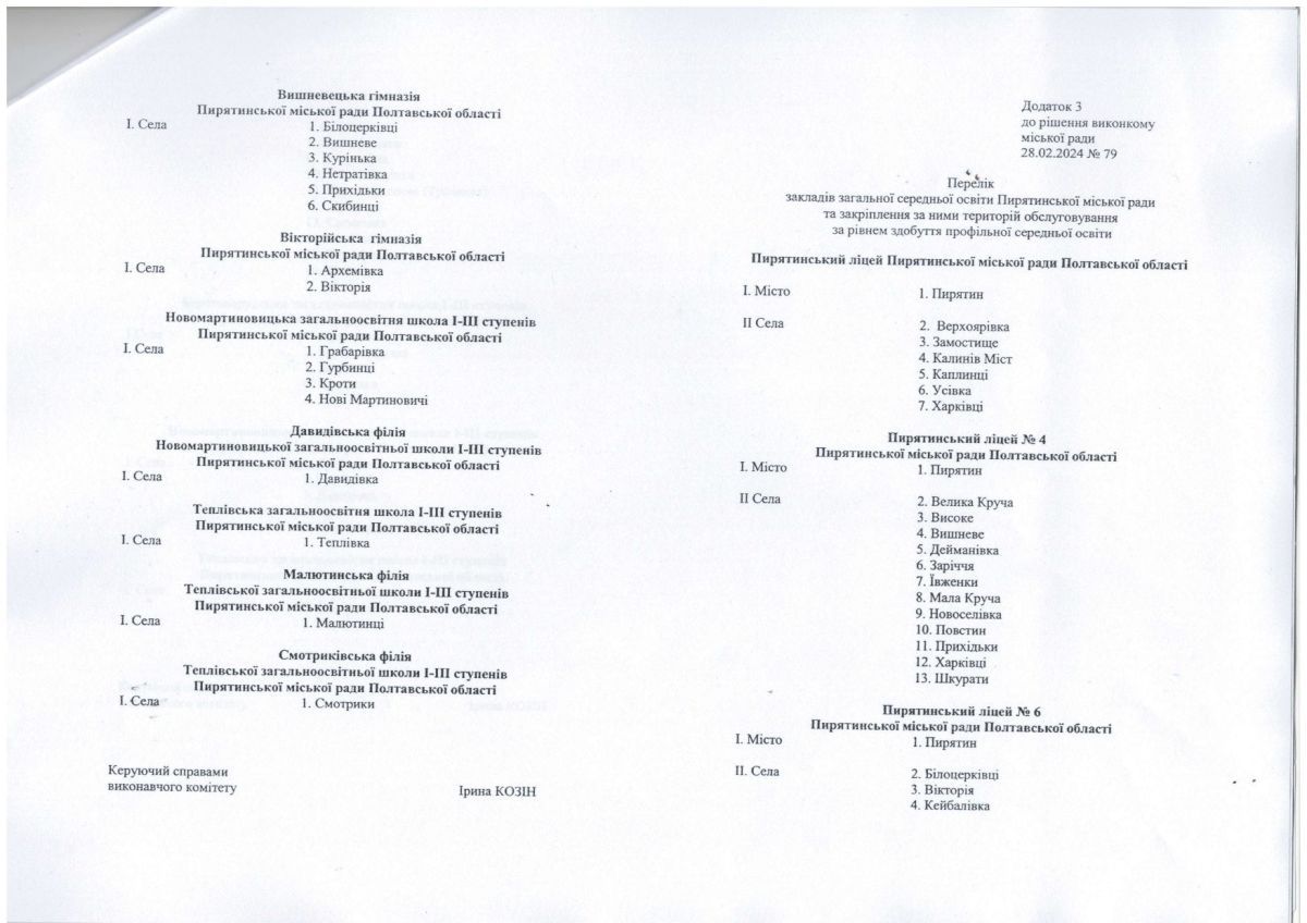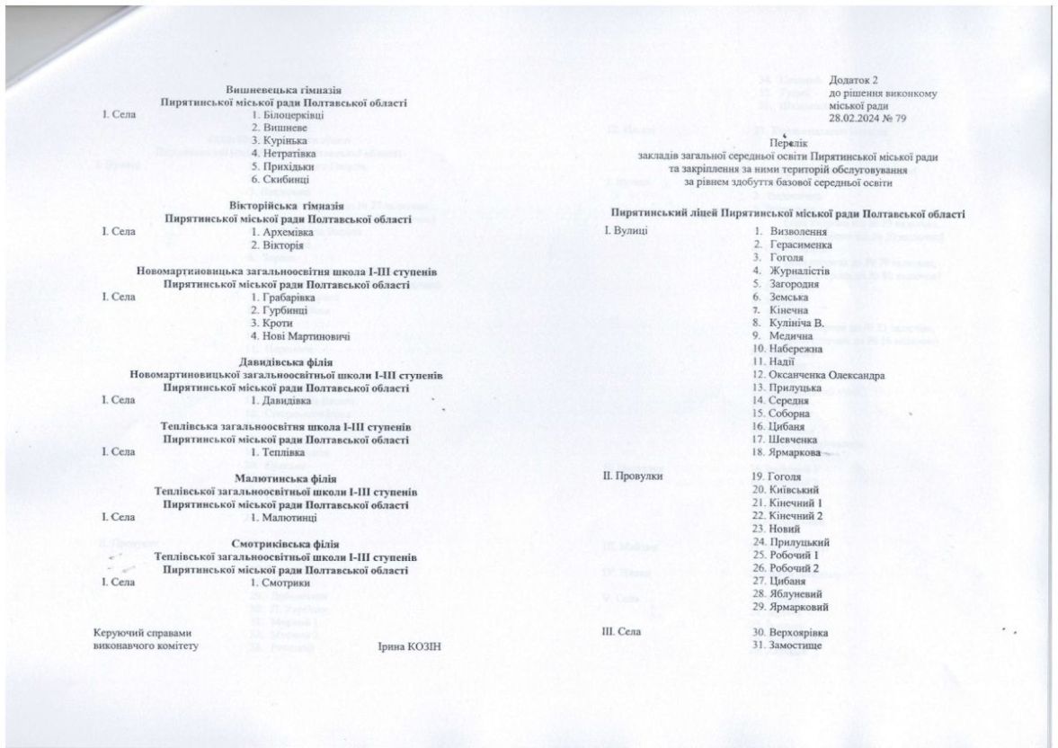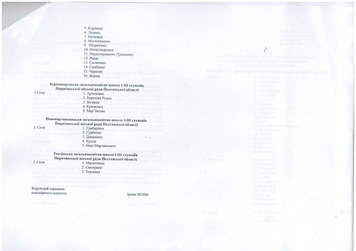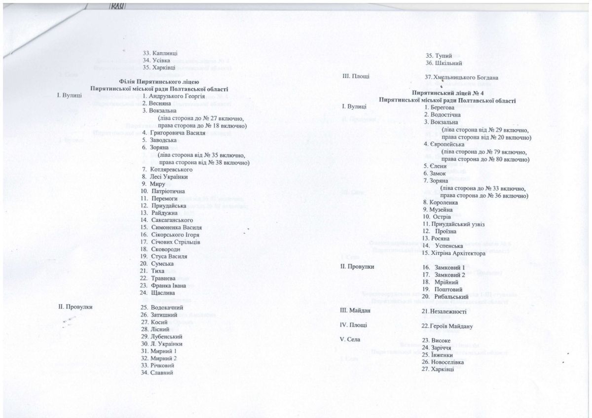 Список закладів освіти Пирятинського району щодо отримання ліцензії